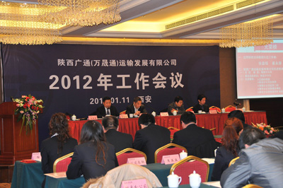 2012年1月11日,陜西廣通運(yùn)輸發(fā)展有限公司、陜西萬晟通實(shí)業(yè)有限公司2012年工作會議在西安悅豪酒店隆重召開。陜煤運(yùn)銷集團(tuán)公司總經(jīng)理助理、運(yùn)輸中心主任譚志軍,陜煤炭運(yùn)銷集團(tuán)公司財(cái)務(wù)部經(jīng)理、廣通公司財(cái)務(wù)總監(jiān)和學(xué)謙,廣通公司董事長、萬晟通公司董事長任曉鵬,廣通公司總經(jīng)理、萬晟通公司董事長助理沈來萬,萬晟通公司總經(jīng)理孟立新,陜煤炭運(yùn)銷集團(tuán)公司運(yùn)輸中心王江,以及廣通和萬晟通公司的員工代表共九十多人參加了此次會議。會議由廣通公司常務(wù)副總經(jīng)理張益銘主持。